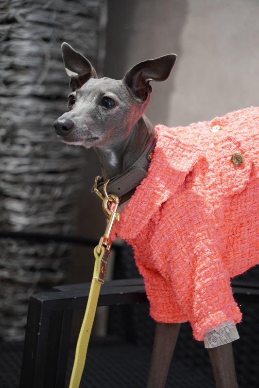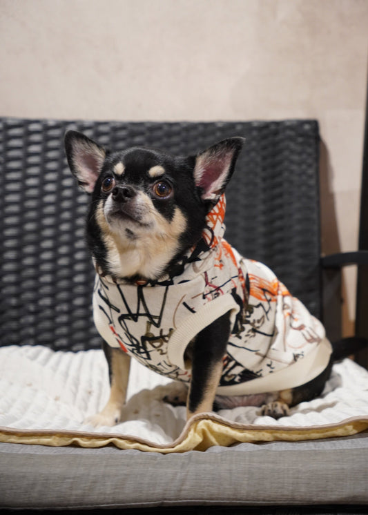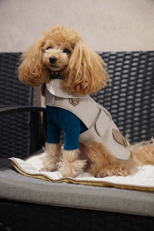オーナー自らデザインする犬服は素材から製法にまでこだわり、人用服顔負けの品質です。飼い主の自己満足に留まらないワンちゃんの着心地を考えて作っております。