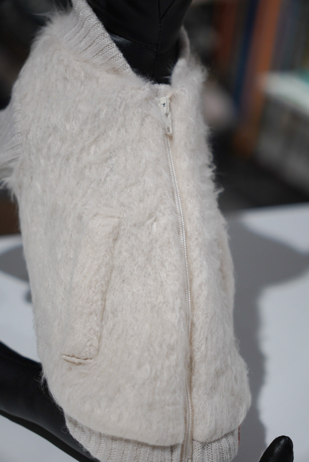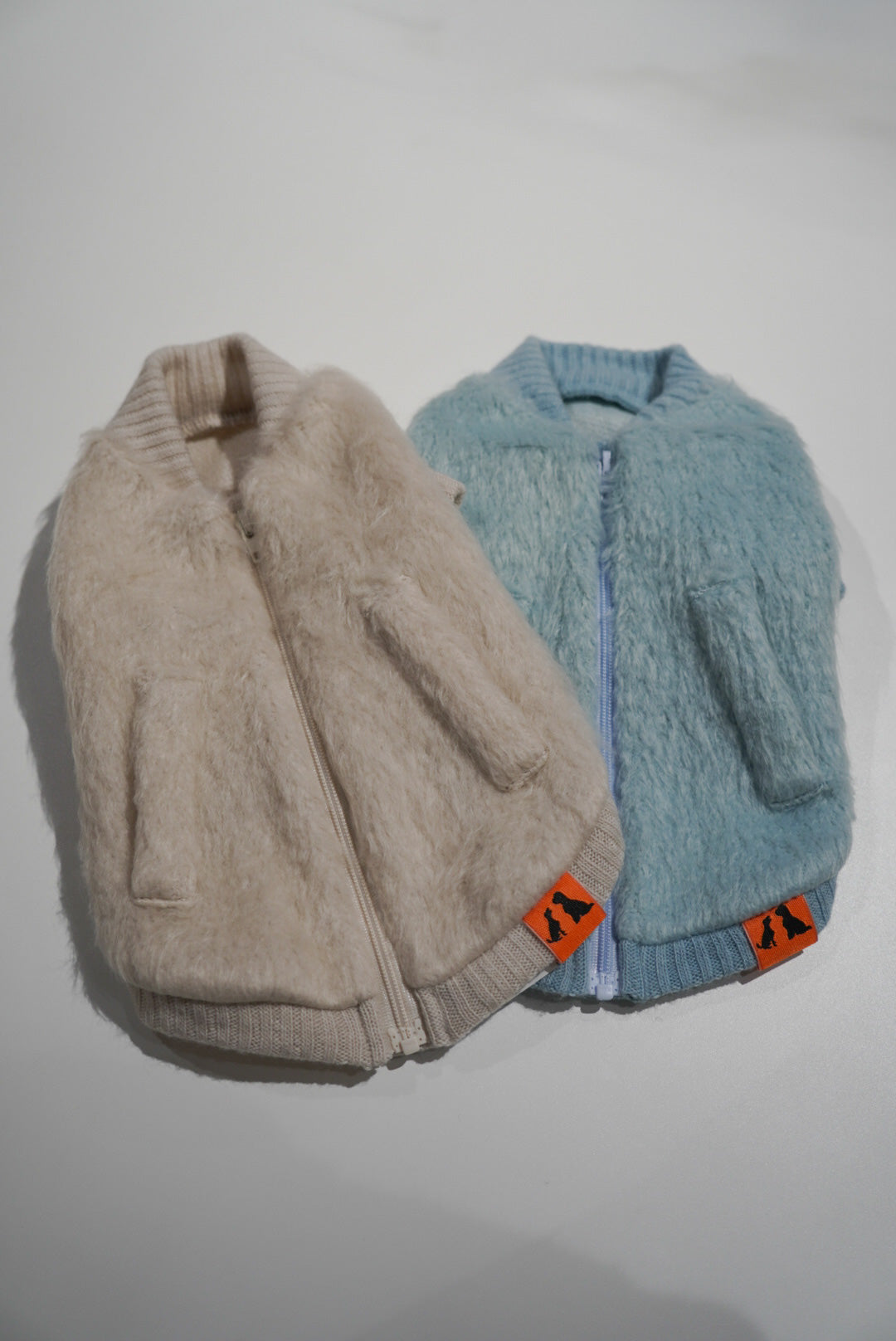 ロングシャギージップアップ(ベージュ/アイスブルー)