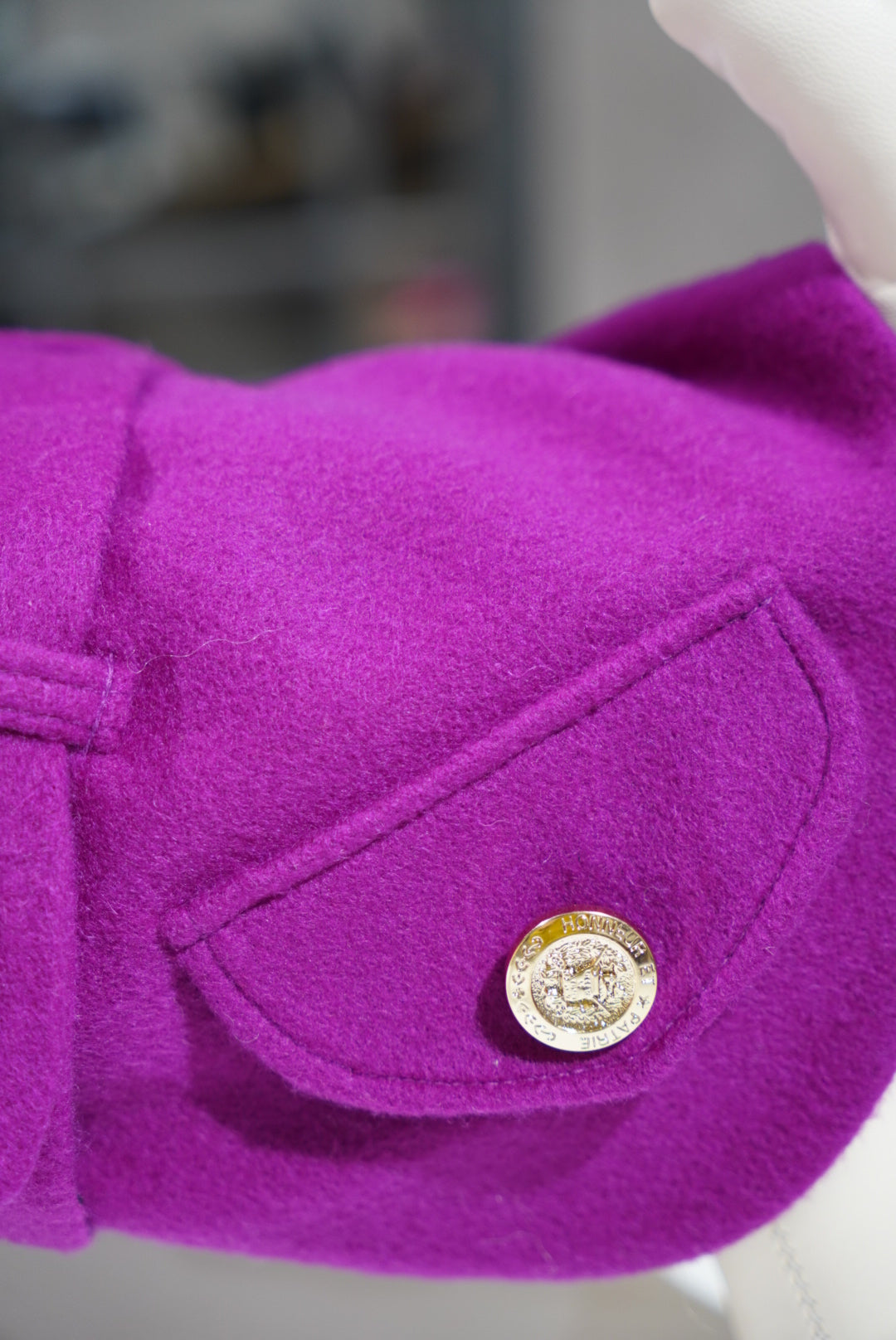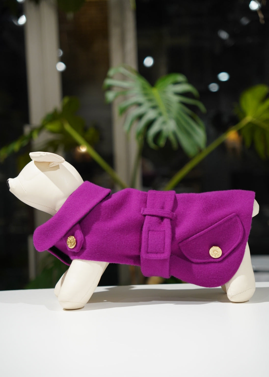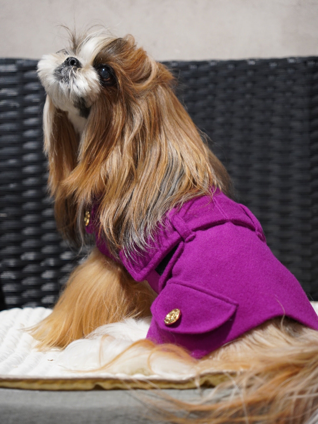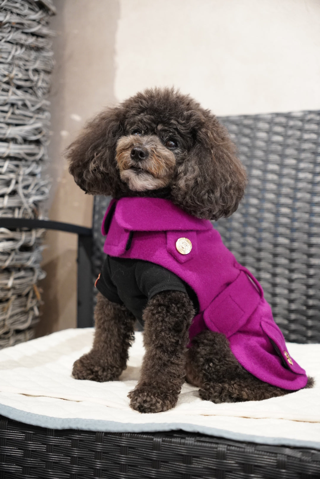 ・鮮烈なワインカラーが、クラシックなシルエットを一層モードに格上げ。
